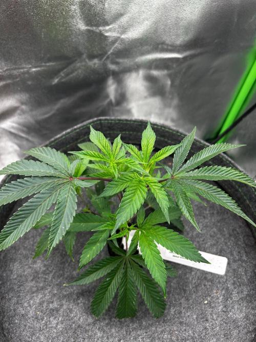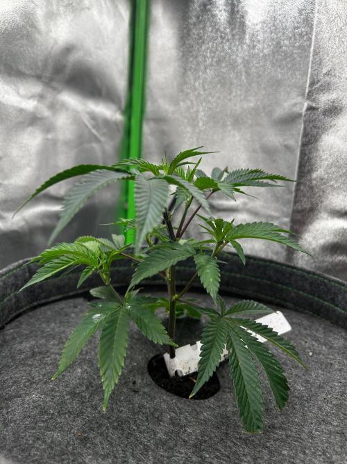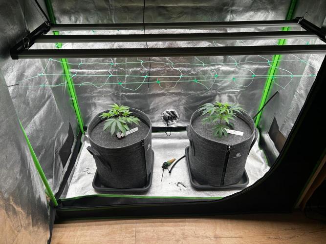 Last week, I topped her after the 6th node. Yesterday, she was transplanted into 30L pots and moved into the final tent.