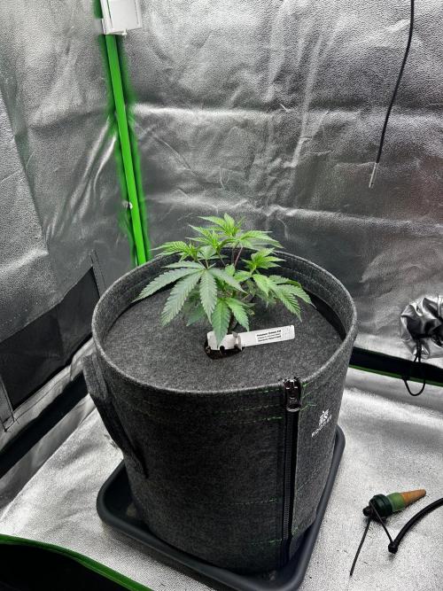 Last week, I topped her after the 6th node. Yesterday, she was transplanted into 30L pots and moved into the final tent.