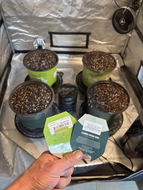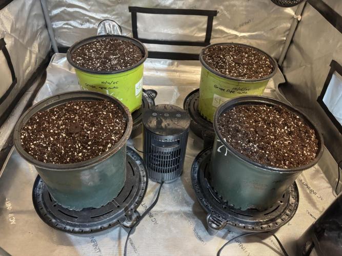 Germinating in root riot cubes, 3 gallon pot. Dropped the bean October 12.