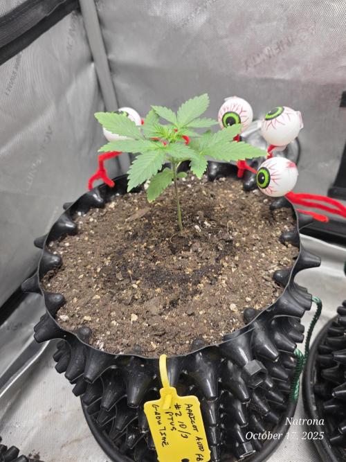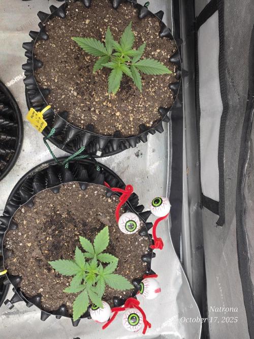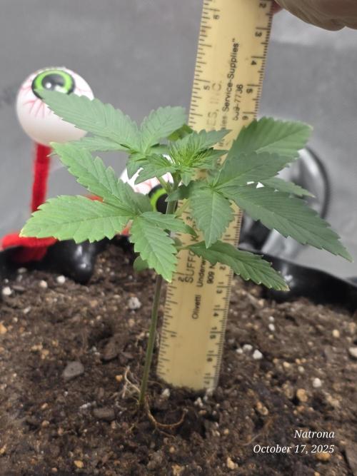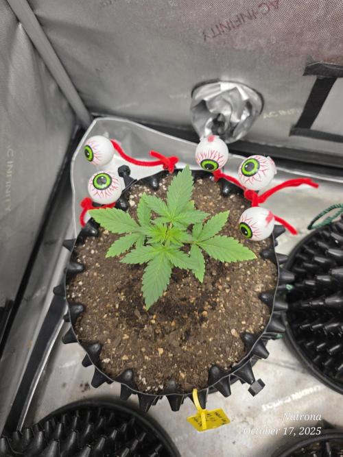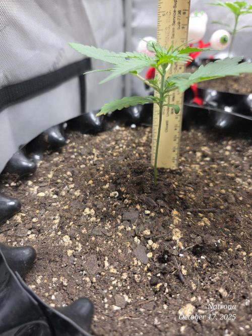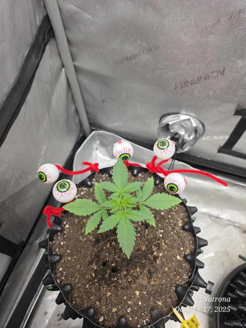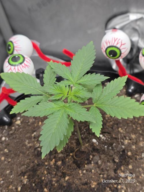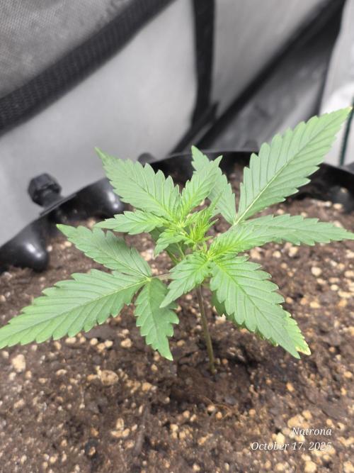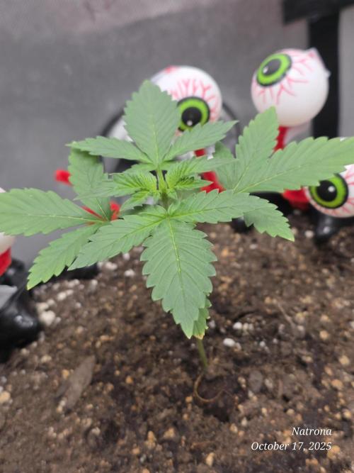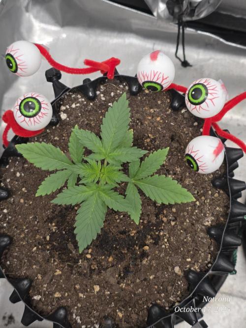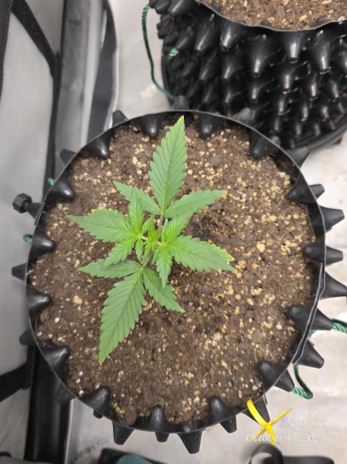9/30 Then placed the uncracked seed into a root riot cube and placed it in a 4” starter pot with seed start mix, a light sprinkle of Dynomyco, and lightly covered and misted. The seeds went into the 3x3 in the dark to germinate.