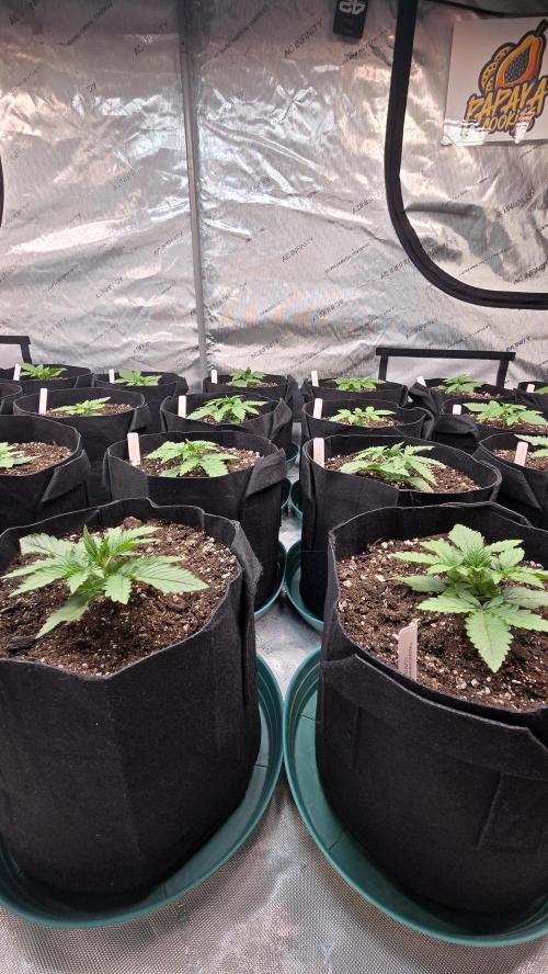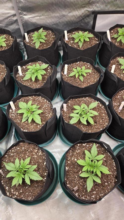 Chubbs Weekly update on these terp monsters. They're growing beautiful, progressing every day i see new growth. Fun to watch. I started hand watering, they're getting anywhere from 250-500ml daily. Lights are set at 50% so will let them get through the veg cycle before I up the intensity. All in all Happy Growing.
