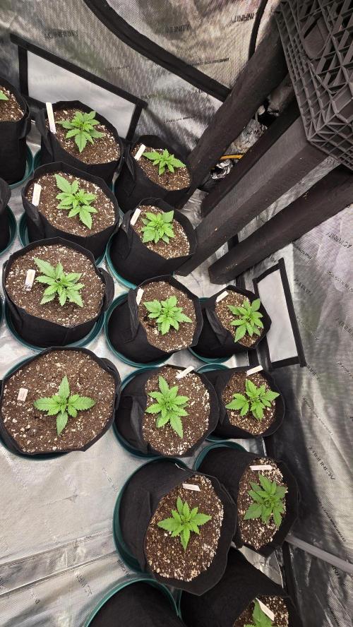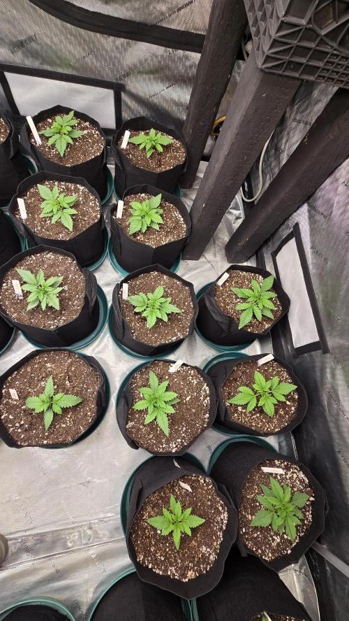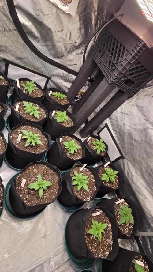 Chubbs Weekly update on these terp monsters. They're growing beautiful, progressing every day i see new growth. Fun to watch. I started hand watering, they're getting anywhere from 250-500ml daily. Lights are set at 50% so will let them get through the veg cycle before I up the intensity. All in all Happy Growing.