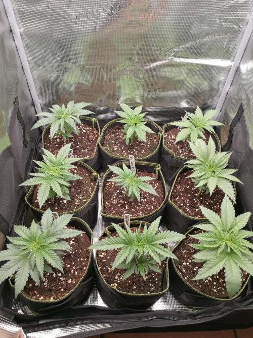 Elu_and_Diddy New grow box, new grow season! Today, the pre-germinated seeds went into the soil and moved into the new grow tent for the vegetative phase. I used the Plagron Seed Booster for the first time, and I'm absolutely thrilled! : ) After 5 Days one seedling has a little to struggle... The remaining 8 are growing excellently : )