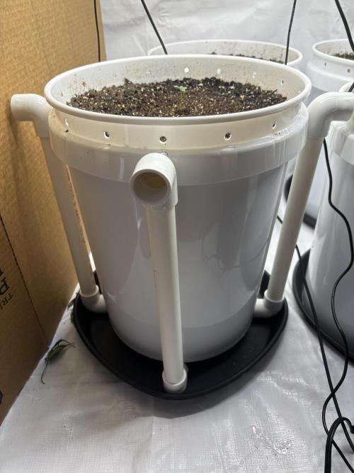 BossberryFarms Excited to get started on this 3rd grow of Bruce Banner Autos! Decided to try 5-gal buckets this time. I drilled holes in the bottom for drainage and around the top rim to assist in tying down branches.