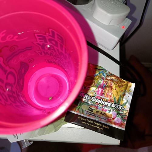 Sprayed -with the water mix from start of week ph6.41, the domes (jugs) and placed under 24hr light CFL 125w for the rest of germination week and possibly week 1 veg we'll see.