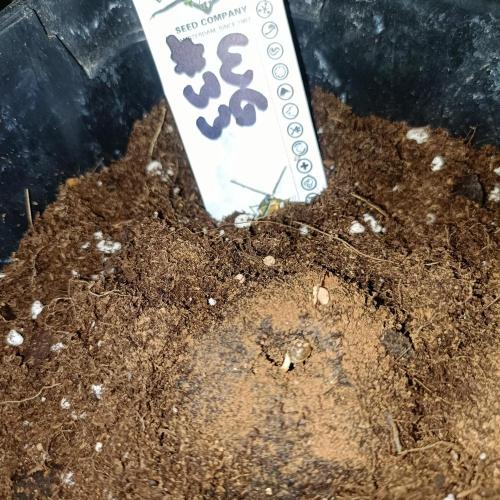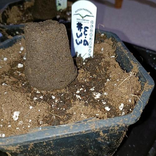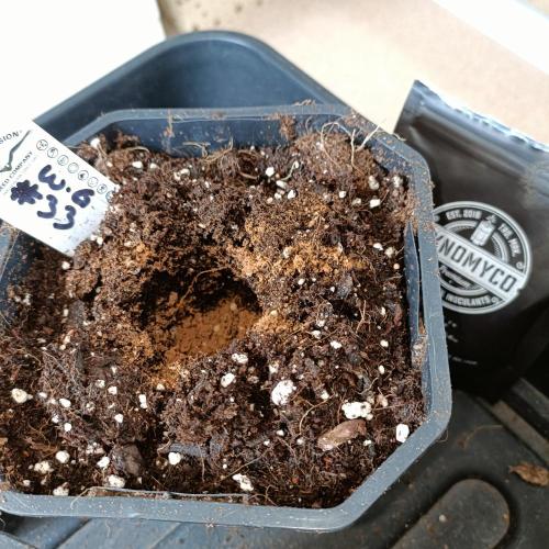 With my finger made a hole in the centre big enough for the root riot plug, (once the seed is germinated) Sprinkled in Dynamyco for plug hole.