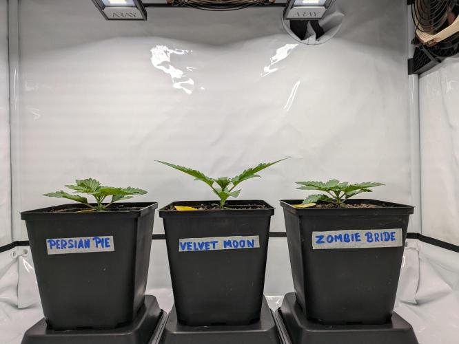 tantrumrage Time for the last run of 2025: all 3 sprouted on 09/09/2025, Strains are Persian Pie, Velvet Moon and Zombie Bride never grown them before so I'm excited to try some different breeders this time.