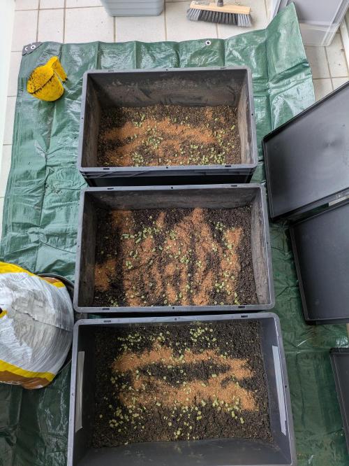 Using amended soil with a few changes since the last time, so hopefully no additional nutrients will be needed. Started them in 3,5l pots with a wicker for watering.