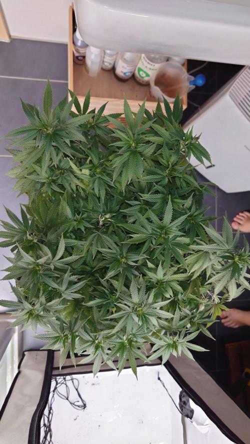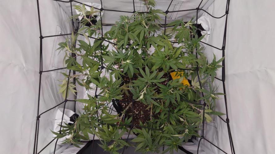 Sundancers Eigentlich keine Pflanze für Scrog, wir versuchens trotzdem. Sehr dichtes Blattwerk, es tut weh so viel abschneiden zu müssen. Das Ergebnis sieht mittlerweile aber vielversprechend aus. Wir werden sehen.