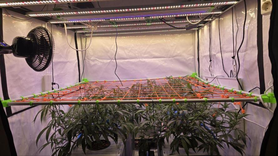 Sobald die Struktur steht, folgt der Umzug ins Scrog-Zelt.