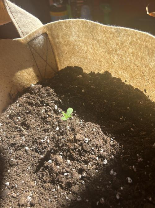Daniss98 What’s up growmies! This week i’ve planted two more seeds that i got for free on my local growshop! I’ve planted one in a 5Liter pot and the other on a 20L just to see how big of a difference it will be. I watered both about 100 ml and covered them with a plastic container on top to get higher level of humidity and preventing the soil of drying too fast, so far so good this last pictures are from their 5th day since planted definitely they gonna get much bigger than my other batch. The Sweet Skunk its getting bigger faster than the gorilla z. I see you in a week with the update! Goodsmokes!💨
