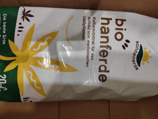 Für den Grow wird ein 15 Liter ROOTiES Stofftopf verwendet. Und die Bio Hanferde von Sonnenerde wird verwendet mit der Bio Faser zum Mulchen. Die Bio Hanferde habe ich noch mit Monster Bud Mix für Living Soil von BIONOVA und Zamnesia angereichert.