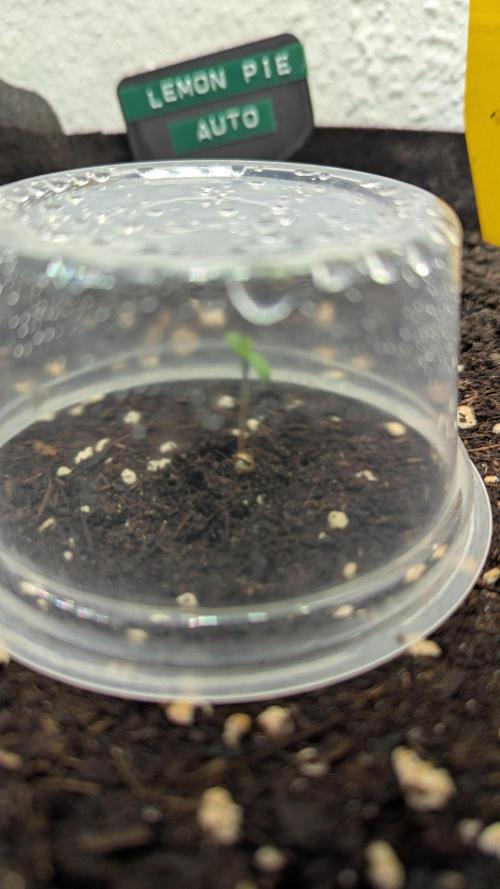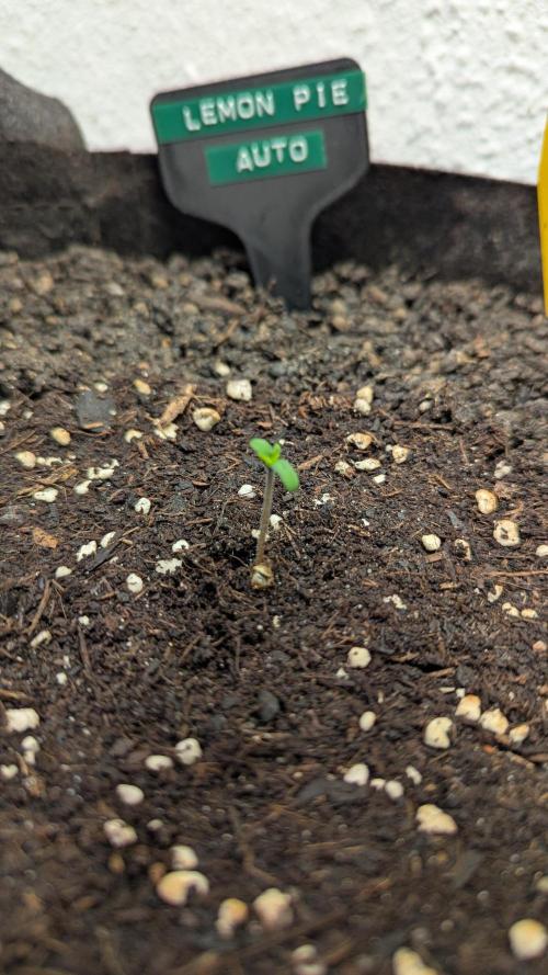 I didn't plant the seed directly in the living soil, because it's too nutrient rich, which can cause stress for a young plant, so I carved out a cone and filled it with a very light seedling soil and added a tiny amount Dynomyco, for some early fungal symbiosis.
