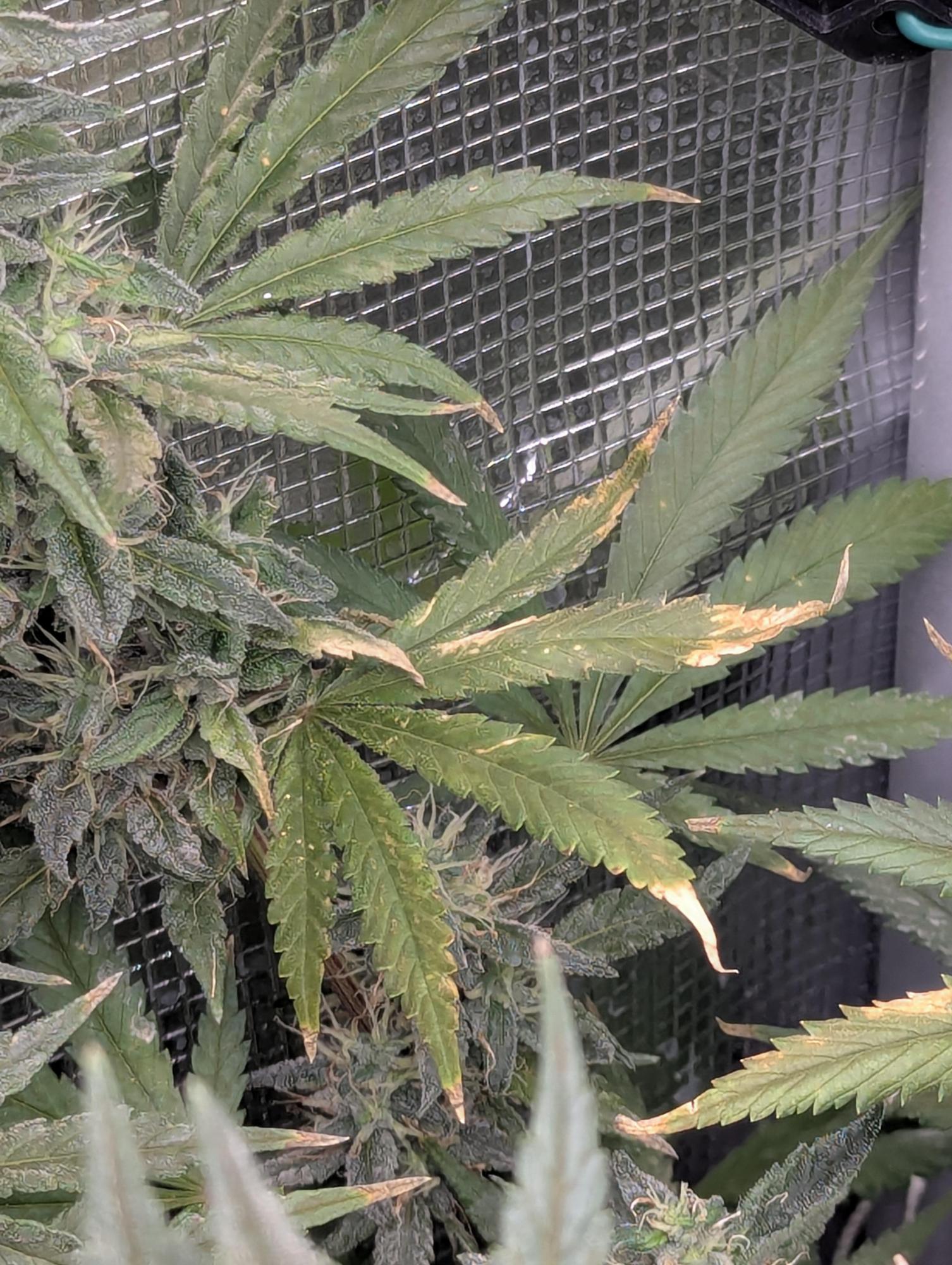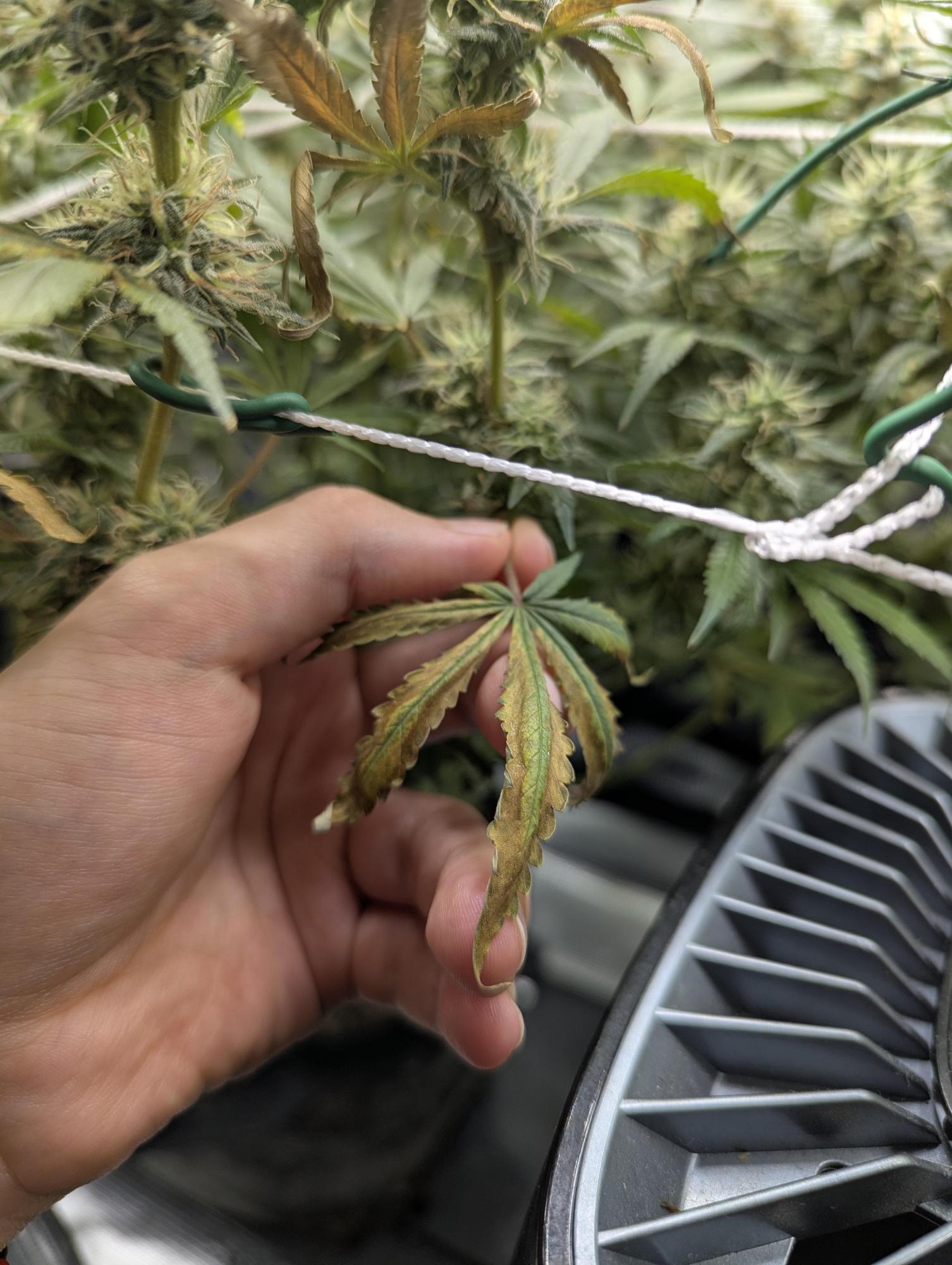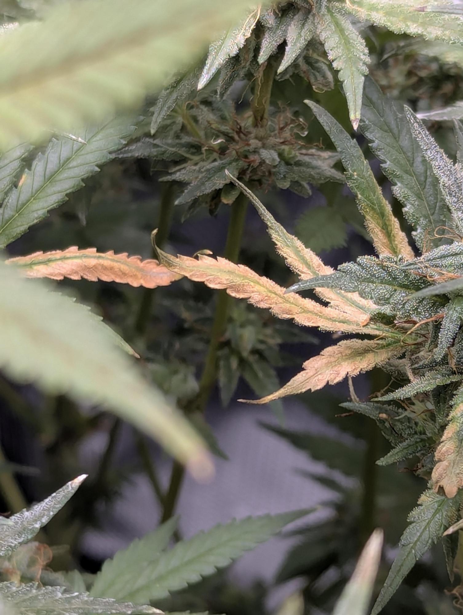 I'm having these rusty leaves starting from the lower ones on both plants in the tent (on of them affected much more severely).