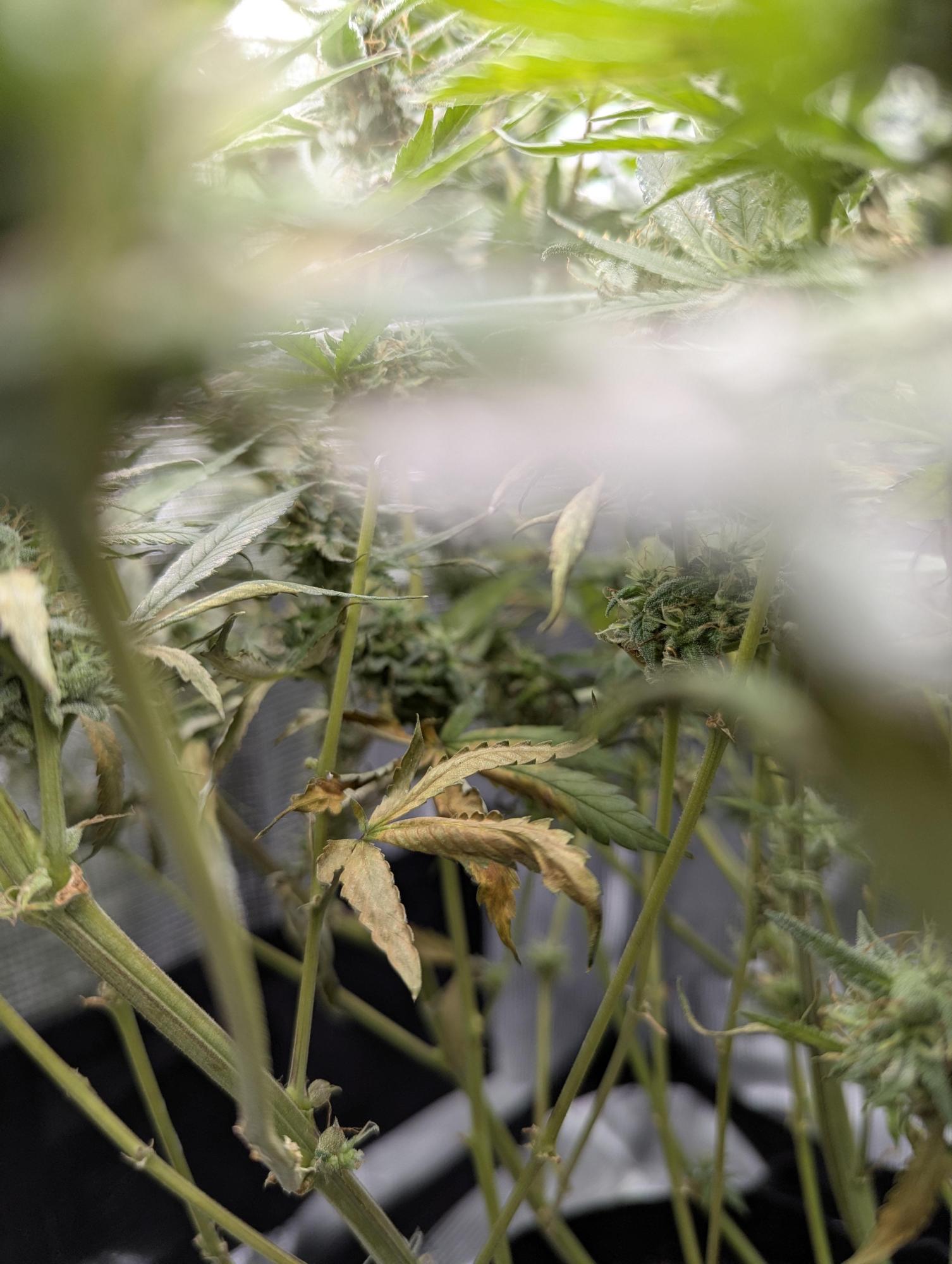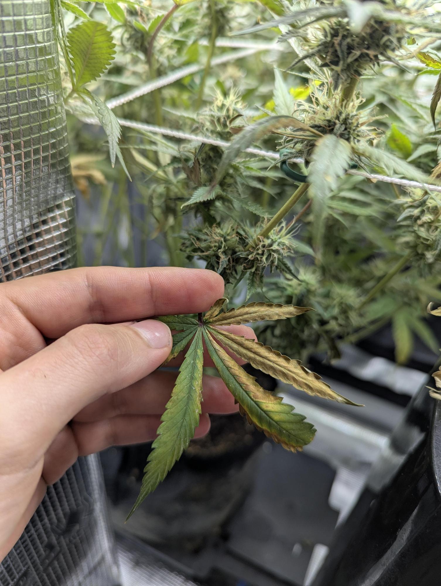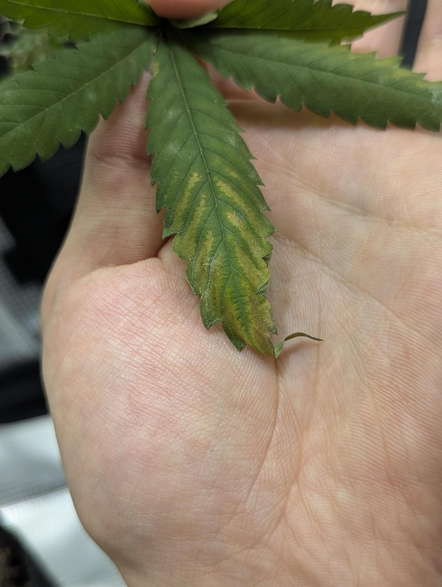 I'm having these rusty leaves starting from the lower ones on both plants in the tent (on of them affected much more severely).