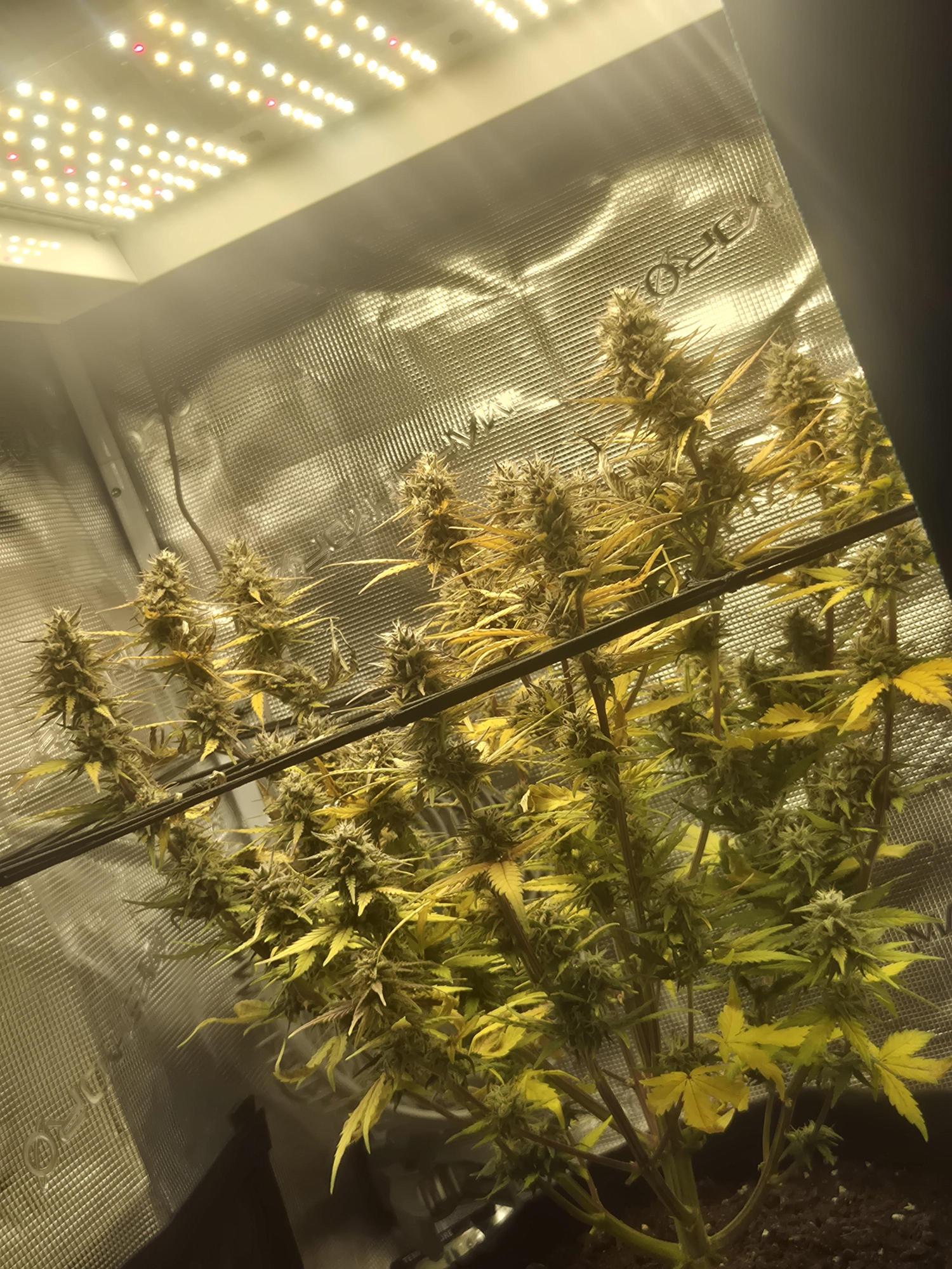 The pictures have a strong glare to them so it's not ideal for diagnosis, looks like black spots. Black spots to me signal potential fungal problem so keep eye out for that. Anything fungal or bacterial come hand in hand with too much water sitting in a medium or high rh. 🤔 Plants look lovely and ripe well into senescence, try posting some pictures under natural light with more focus on trichomes colors, this should give people a much better and accurate idea of when and what to do next. Wish you the very best, first grows are always exciting, well done.