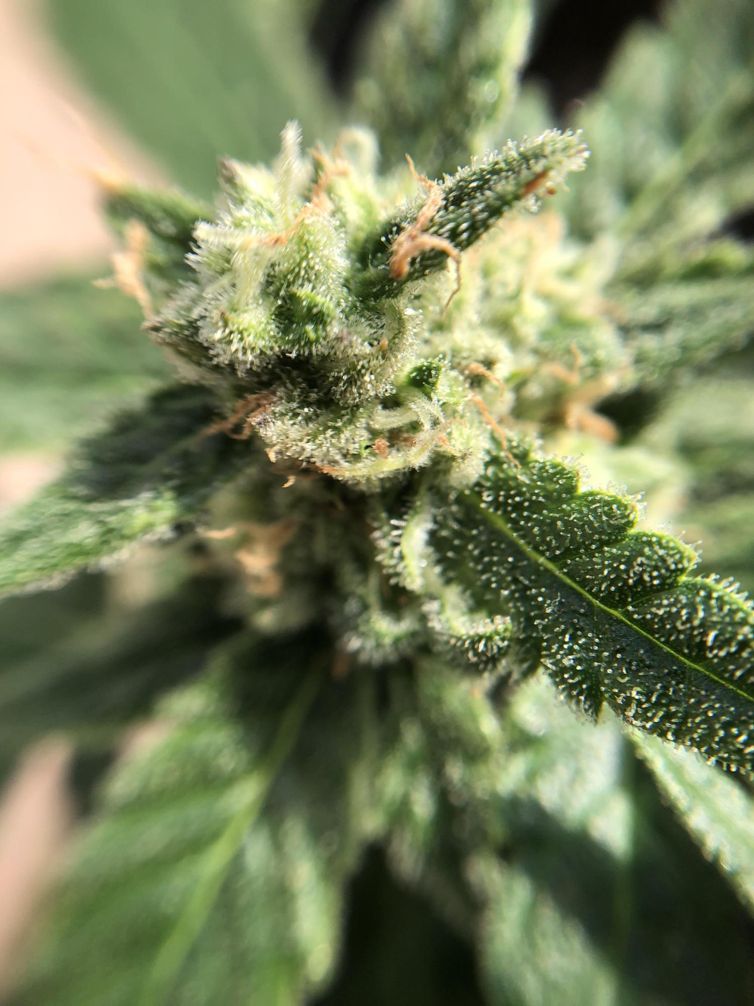 Does it still need more time? Hairs look 75-90%(depending on what cola you look at) orange and trichs look about right. Not sure if I'm seeing new pistols or their just kinda folding inwards. My preference is to harvest it for a nice balanced effect. Just a little couch lock.