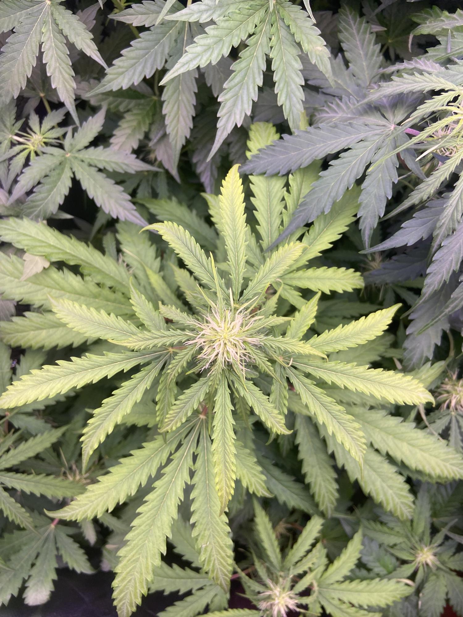 Do you leave you door open on your tent? Could just be growing slower than the others from lack of reflective light if you do. Went through something similar with a plant i kept in the exact same spot