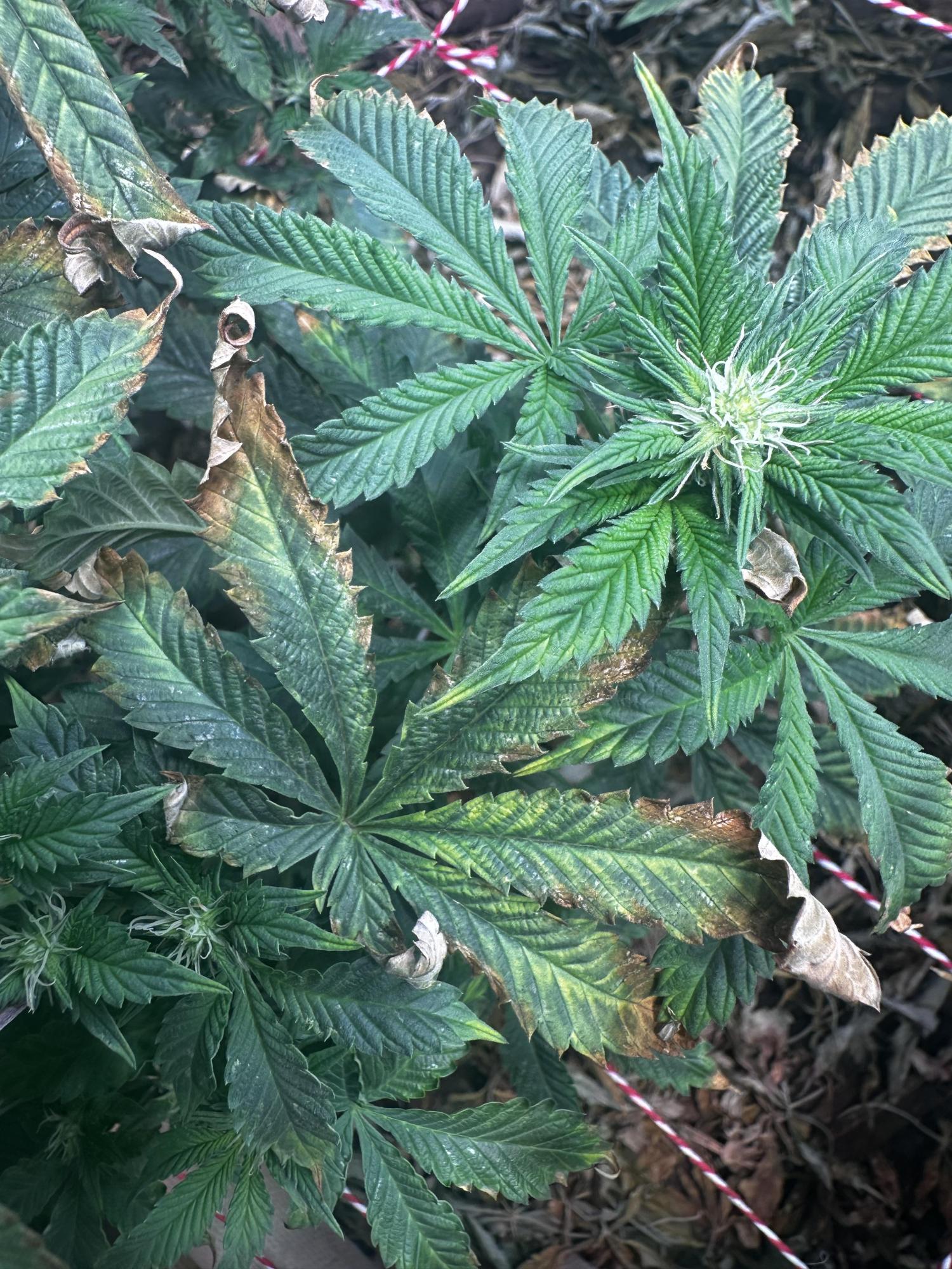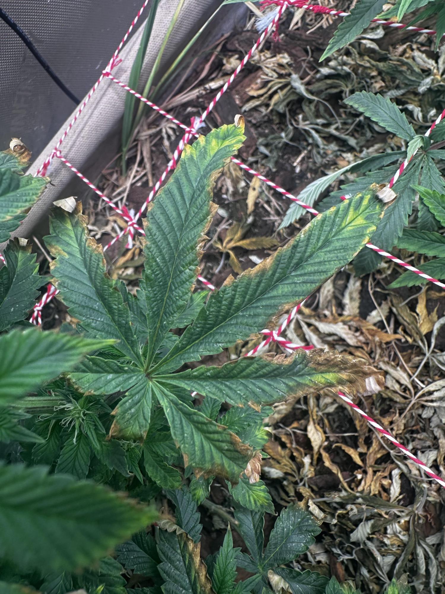 Looks like a potassium deficiency, You can tell from the brown edges and spots on the older fan leaves. Double check your pH first (too high or low can block uptake), and if that’s fine, try boosting potassium slightly maybe add a bit of bloom nutes or a PK booster.