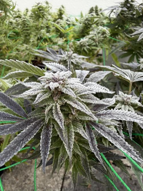 We got first frost yesterday First I was thinking that it was powderymeldew but no it’s frost. have no space indoors she is staying on balcony like open top The question is should go for flush and harvest her or wait few weeks until she is done I am bit scared of budrott