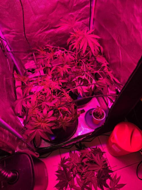 Today is first day of flower. Flipped lights last night, added scrog and defoliated. Think I could have left the top fan leaves for a little longer but too late F it...