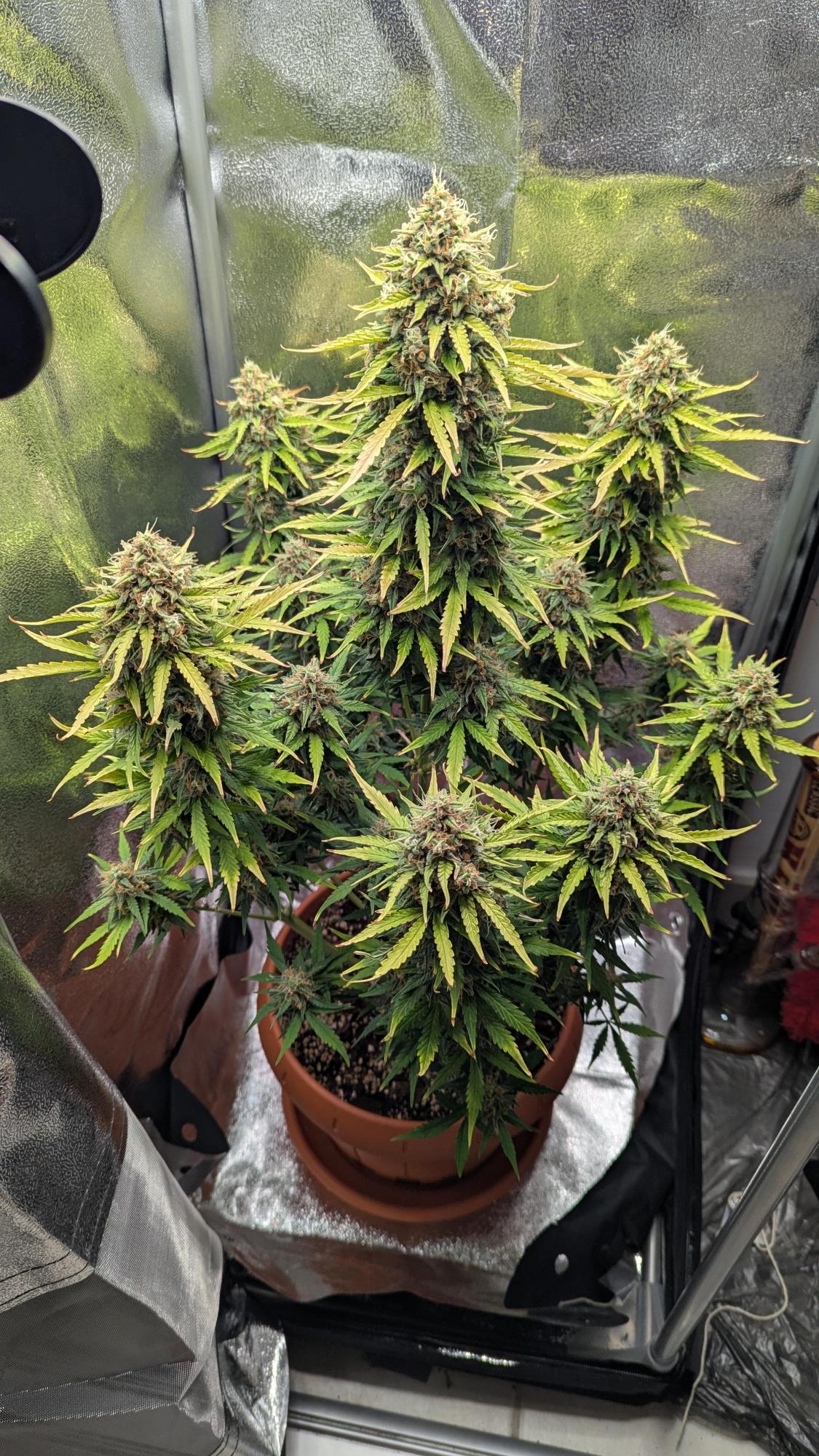 Tangerine Dream Auto is a sativa-dominant autoflowering strain based on the popular original Tangerine Dream. THC and CBD levels are slightly lower. Just like the original variety, Tangerine Dream Auto has a small growth and compact dimensions. It can reach only 70 cm in height.
