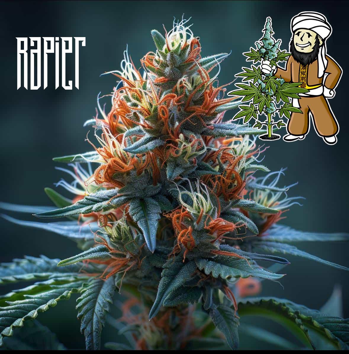 Auto Divine Rapier marijuana was designed as a variety superior to most autoflowering Indicas, not only in THC percentage, but in all qualities: yield, resin production, endurability. To breed monstrously potent cannabis, you begin with choosing proper genetics, which in this case was an intensively resinous Afghani Kush phenotype crossed with Hawaiian Snow, the best Haze-based hybrid ever (Cannabis Cup 2003 winner). After Canadian Ruderalis genes were added, the autoflowering version went through a long process of breeding and improvement. Numerous back-crossings with the original photoperiod-dependent strain were combined with persistent picking out the healthiest, most resinous and potent samples. Generation after generation, the best bushes were crossed with each other until Auto Divine Rapier became this massive weed with analgesic powers that any experienced stoner will admire. Myrcene, caryophyllene and pinene seem to be the prevailing terpenes in this cannabis, however this may vary depending on the growing conditions, nutrient and type of soil. Growing Auto Divine Rapier weed has to begin well, then the final outcome will be a generous weight of impressively potent buds. Autoflowering plants can’t be transplanted and need to be protected from any kind of stress throughout the vegetative phase. That means, place your Auto Divine Rapier seedlings from the start into final-size pots (20-24 litres) and only use non-stress training on those bushes: LST (bending) or ScroG. Not only was the latter technique widely practised with this marijuana in the development process, but we also continue ScroGging our mother plants while growing seeds. Thus both its adaptivity and yielding capacity have been brought to a highest point! When blossoming, Auto Divine Rapier plantation emanates a thick fruity odor with spicy and mint hints increasing with the course of time. The scent being extremely intensive, normally insect parasites can’t harm this weed. Dense floral mass needs active ventilation and a humidity level no more than 50-60% if grown indoors, while outdoor plants may have to be covered if torrential rains set in for a couple of weeks. Generally, Auto Divine Rapier inherits both tropical and oriental genetics which makes it resistant to uncomfortably cold / hot weather on condition that nutrition, watering and the lights are appropriate. Outdoor ripening time is mid August. Buds that Auto Divine Rapier produces are so terrific that tripping starts even before fire touches them. Just check out the incredible smell of these dense resinous “bullets”: hints of mango, banana and pineapple with liqourice, peppery and piney hints. When smoked, Auto Divine Rapier hits in 4-5 minutes: blood pressure drops, the train of thought slows down, musles relax. This type of weed is commonly enjoyed either on you own, or with people you feel comfortable to be silent around, since it doesn’t promote communication or activity. Nice choice for unwinding after a hard week, for eliminating negative emotions. Although you won’t talk or move much on Auto Divine Rapier, a lot may be happening in the conscience: the Sativa heritage makes this stoning cannabis very psychedelic as well. Can be applied as an additional treatment against cancer, arthritis, diabetes, ADHD, PTSD, Alzheimer’s disease, epilepsy. Kills off nausea, stops insomnia from bothering you. The trippy effects last for 2-3 hours leaving a long aftertrace.