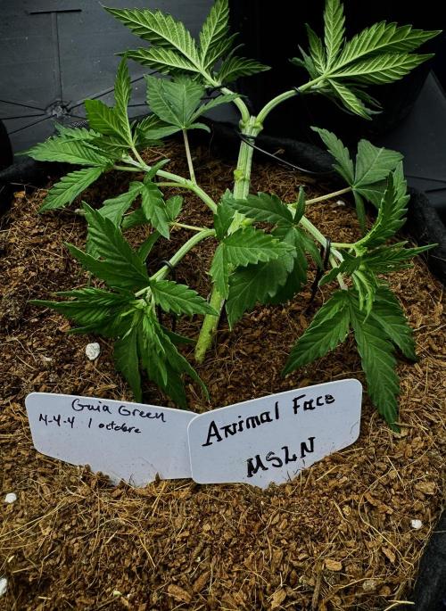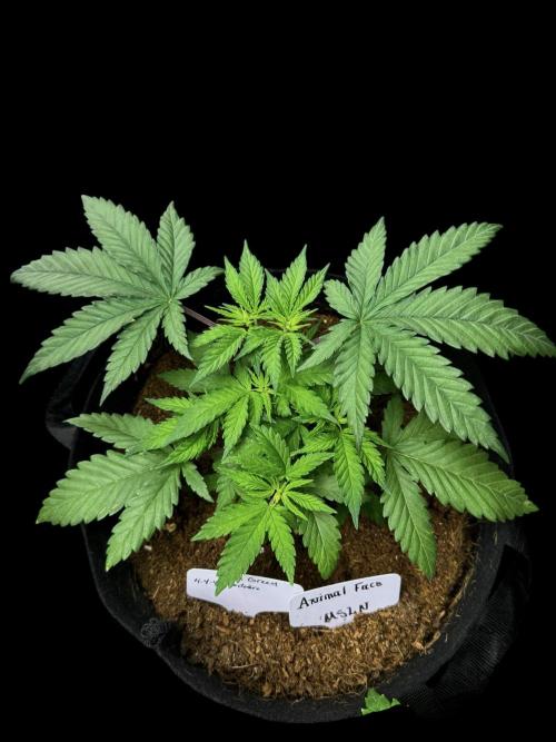Animal Face is a rare Sativa-dominant hybrid, created from a cross between the classic Face Off OG and Animal Mints. Known for its mind-relaxing and body-numbing effects, its frosty buds and orange hairs offer a distinct nutty taste with hints of citrus, earth, and pine. This strain combines potent THC levels with complex flavors for a strong high and unique flavonoid profile.