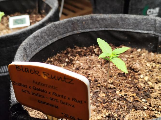 Black Runtz Auto is well known for being one of the powerful autoflowering cannabis strains on the market due to its ability to deliver high levels of THC quickly. This success is credited to the work of our expert breeders who carefully chose premium parent genetics such as Zkittlez, Gelato and Runtz crossing them to create the popular Black Runtz feminized strain. Adding genetics has further enhanced this strains reputation as a top choice, for those seeking potent autoflowering options. Black Runtz Auto is known for its development process as it goes from seed to harvest in just 10–11 weeks. It starts off as resilient seedling and can grow up to 100 cm tall indoors without any training. If you use low stress training (LST) you can keep the plant at around 65 cm height during its growth cycle. Expect a yield of up to 400 g/m² once it matures. Outdoors it can grow even taller reaching, up to 120 cm without any interference. Each plant has the potential to produce much as 110 grams, with adequate attention and feeding. With its resinous buds Black Runtz Auto is a sight to behold during its flowering stage.. It's the smoking session that sets this strain apart. One puff unveils a mix of flavors, like petals, blue cheese notes and a hint of sage creating a taste profile that stands out from the rest. Paired with a 23% THC content it brings about a strong physical relaxation easing away tensions and promoting a sense of calmness.