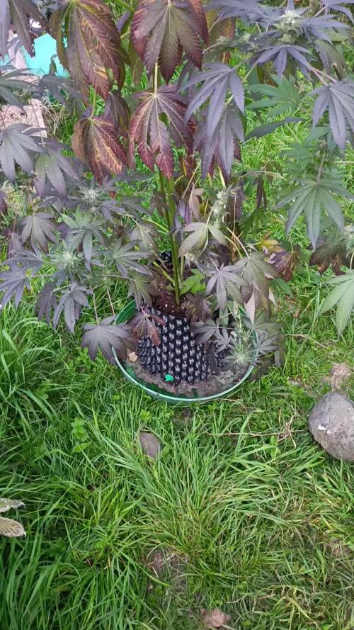 Eccoci qua ragazzi stiamo arrivando alla fine di questa esperienza outdoor molto rischiosa a mio parere! Pensate che dove mi trovo io davanti a casa mia certe volte gli sbirri fanno posti di blocco! Infatti penso che ancora una settimana al massimo e poi provvederò subito a raccogliere e seccare, xke la situazione di sta facendo davvero troppo rischiosa.. A parte questo la ragazza sta proprio esplodendo! Ha completamente cambiato colore verso un violaceo nero quasi scuro, causa le temp ma anche il fenotipo già tendeva verso questa colorazione, la pianta in sé è davvero immensa più di 180 cm in un vaso da 12.5 litri, questo significa che i nutrienti plagron sono davvero fenomenali! Stanno gonfiando le cime in modo assurdo e senza che ci sia una minima carenza nelle foglie più basse! Non avendola toppata ne altro è venuta grande a stile di albero di natale! Davvero impressionante! L odore è molto pungente sentori di frutti di bosco e bacche rosse, nn saprei distinguere bene, vedremo poi piu avanti, l unico problema è questo odore motlo intenso e fragrante si sta diffondendo anche nelle abitazioni circostanti sopratutto la sera quindi sono preoccupato che qualcuno possa fare un infamata e mi rovinerebbe la vita.. Apparte ciò speriamo che nn faccia muffa xke l umidità la notte è davvero alta, per adesso nn ho avuto ancora di questi problemi per fortuna, una genetica molto resistente sembra a questo tipo di stress.. Speriamo bene incrociamo le dita e fate una preghiera per me! Alla prossima settimana! Vi adoro e un buon 420 a tutti voi! 💪😸🌱🌿🌲🍀🤤😽💨❄️🇵🇸