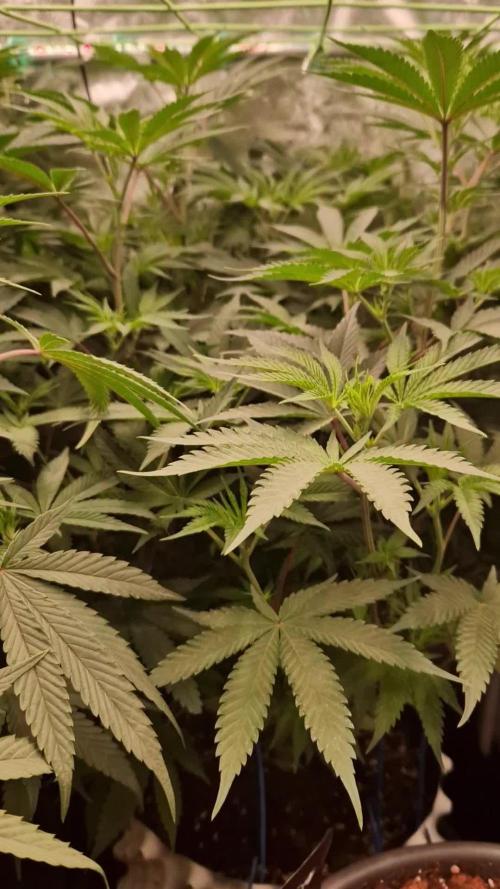 I have removed a few fan leaves at the lower canopies. As well as removing all the LST clips. Next week, we might remove all the fabric ties too, I'll see how we're looking.
