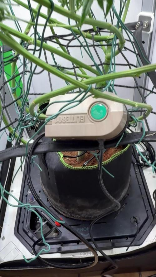 Das semi-hydroponische System läuft weiterhin stabil und zuverlässig. Die Pumpe sorgt für gleichmäßige Zirkulation und hohe Sauerstoffwerte im Wurzelbereich. Die Pflanzen zeigen keinerlei Stresssymptome – das Wurzelsystem ist aktiv, die Nährstoffaufnahme konstant, und das Wachstum harmonisch.