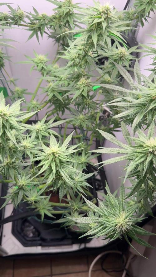 Die Struktur ist offen und gut belüftet, die Blütenstände sind gleichmäßig über das gesamte Netz verteilt. Die Pflanzen präsentieren sich kompakt und kräftig, bereit, in den kommenden Wochen an Dichte und Harzproduktion zuzulegen.