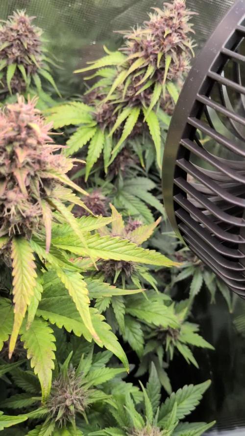 This girl is growing pretty well with a good vigour even through this.bad week , staying pretty compact with an abundance of pistle formation indicates this is going to be decent size dense nugs and hopfully keep good airflow around these girls . The outsider gorilla glue over with the newer plants is hitting a good rebound, nothing special but not a total waste anyways which shows strong resistance overall which is a good incentive when picking which genicitis you would run in smaller space this is definitely the square ⬛ 10liter S.O.G / ScrOG method with these plants being smaller and Bushier