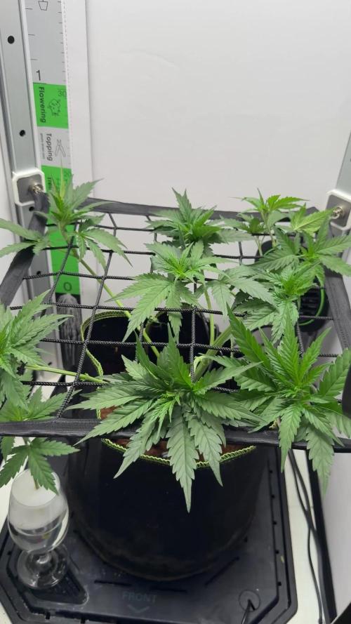 I absolutely love to watch them grow! Especially that moment they hit their first growth spurt. I started with RO water that is remineralized for drinking purposes. The ppm is only 18! My tap is 156! So considering they don’t need much water, I’ve been stealing some of our drinking water. The RO water starts at pH of 7. After I add the nutrients, ppm of 249 @ pH of 5.8 while soil is still sweet @ pH of 7 I think my days are off as a new week begins on the last day of the previous week. I am going to leave that for consistency. 04/21 - Noticing some possible nutrient issues with the Fruity Pebbles for several days now. Going to see what she needs. Up front I’m thinking maybe just a super small amount of Amino Acids with a little Epsom Salt. Maybe she is struggling to access the nitrates from the neem cake. IF it’s a issues with nitrogen. We will see. Maybe she would benefit from some extra calcium?… Any ideas are greatly appreciated. Day 22 and I am noticing how these girls have been burning up a lot of potassium lately, dealing with the wind and sun 💨 ☀️, getting pushed around all day. I plant to top dress with some Kelp Meal pretty soon. Day 24 -> 4/22/22- a quote from the weather on today’s red flag warning and dust storm warning. “ HAZARD...Less than a quarter mile visibility with damaging wind in excess of 60 mph. SOURCE...Satellite imagery. IMPACT...Dangerous life-threatening travel.” I’m keeping the girls inside today. Day 26, I was planning to check the runoff on some of these girls, especially the fruity pebbles, however I messed that up as I also top dressed WAY too much of the seaweed bliss. So I flushed with plain RO water at pH of 7 until there was only slight coloration in the runoff. I didn’t check the runoff as a lot has changed with all that flushing. So next watering/feeding I will make sure I check the runoff on multiple plants. So the seaweed bliss with its 17 on potassium, seems to be the most likely culprit for why there is a bronze-ish color on the inside of the new growth. Hopefully a foliar feed of Epsom salts can correct the problem. Inside tent, lights on LOW. Noticing similar pattern in all of them to a degree, most noticeable in the fruity pebbles.