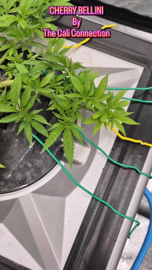 So far Cherry Bellini was a stressful little lady early on during veg, showing signs to anything from a slight e.c change early or ph change or even temps. You name it she would she her displeasure towards you even if you did everything correctly. Later during veg she straighten herself up and became less stressed out towards lst, topping, and everything in between. She's now the biggest one out of the bunch. Light went from 60% to 90% over Week 5 to Week 6, next 2 days she'll be at 100% ready for flowering. 2 set AC infinity bar lights will go in over this week as well as my scrogg net. Nutrients this round Floramax veg1 Floramax organabud Floramax flowering enhancer ( 1/4 ) dose Flairforms roots Sleepz with the fishes ( pythoff ) Cyco platinum series silica Floramax calmag E.c 2.2 Ph 5.9-6 Week 6 let's go 🚀🚀🚀
