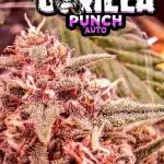 Meet Gorilla Punch Auto, an autoflowering Indica-leaning hybrid created by Fast Buds through crossbreeding Purple Punch and Gorilla Glue, two equally tasty and popular strains. It packs high THC levels, averaging 26%, making it unsuited to inexperienced consumers. Growers should anticipate a challenging experience due to these plants’ specific demands in terms of humidity, temperature, and nutrition. The flowering period takes around 67 days to complete, and knowledgeable growers may expect moderately high yields in the range of 225g/m². Flavor-wise, this strain stands out with a deliciously creamy and earthy profile offering plenty of room for hints of wood, diesel, nuts, and pine to shine through. The Gorilla Punch Auto high is a fast-hitting rush of happiness, creativity, and a generally uplifted sense of well-being. You’ll feel talkative and mentally stimulated to get things done before the physical buzz takes over and leaves you utterly relaxed, sleepy, and satisfied with everything going on around you. Due to these long-lasting and balanced effects, Gorilla Punch Auto is often preferred by medical patients suffering from chronic stress, pain-related issues, and insomnia.