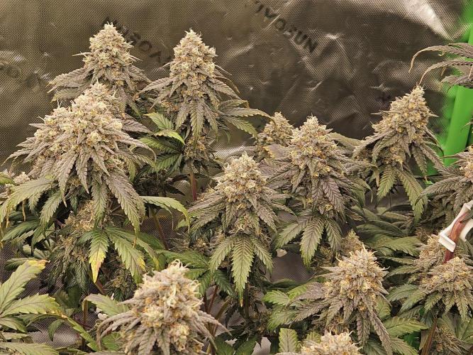 Marshmallow OG is a powerful hybrid strain, sometimes known as Bacio Gelato. This bud is a potent mix of Chemdog, Triangle Kush, and Jet Fuel Gelato. With a high THC level of 20%, it's sure to pack a punch. The flavor of Marshmallow OG is unique, blending peppery notes with smooth butter and sweet vanilla. This strain is known for its relaxing and happiness-inducing effects. It also stimulates hunger, so expect the munchies! Marshmallow OG is a great evening smoke, perfect for chilling out and watching a movie. Medicinally, Marshmallow OG is often used to ease stress, anxiety, and depression. Those growing this strain can expect vibrant, dense buds with a strong aroma. It prefers a warm, sunny climate and has a moderate difficulty level for cultivators.