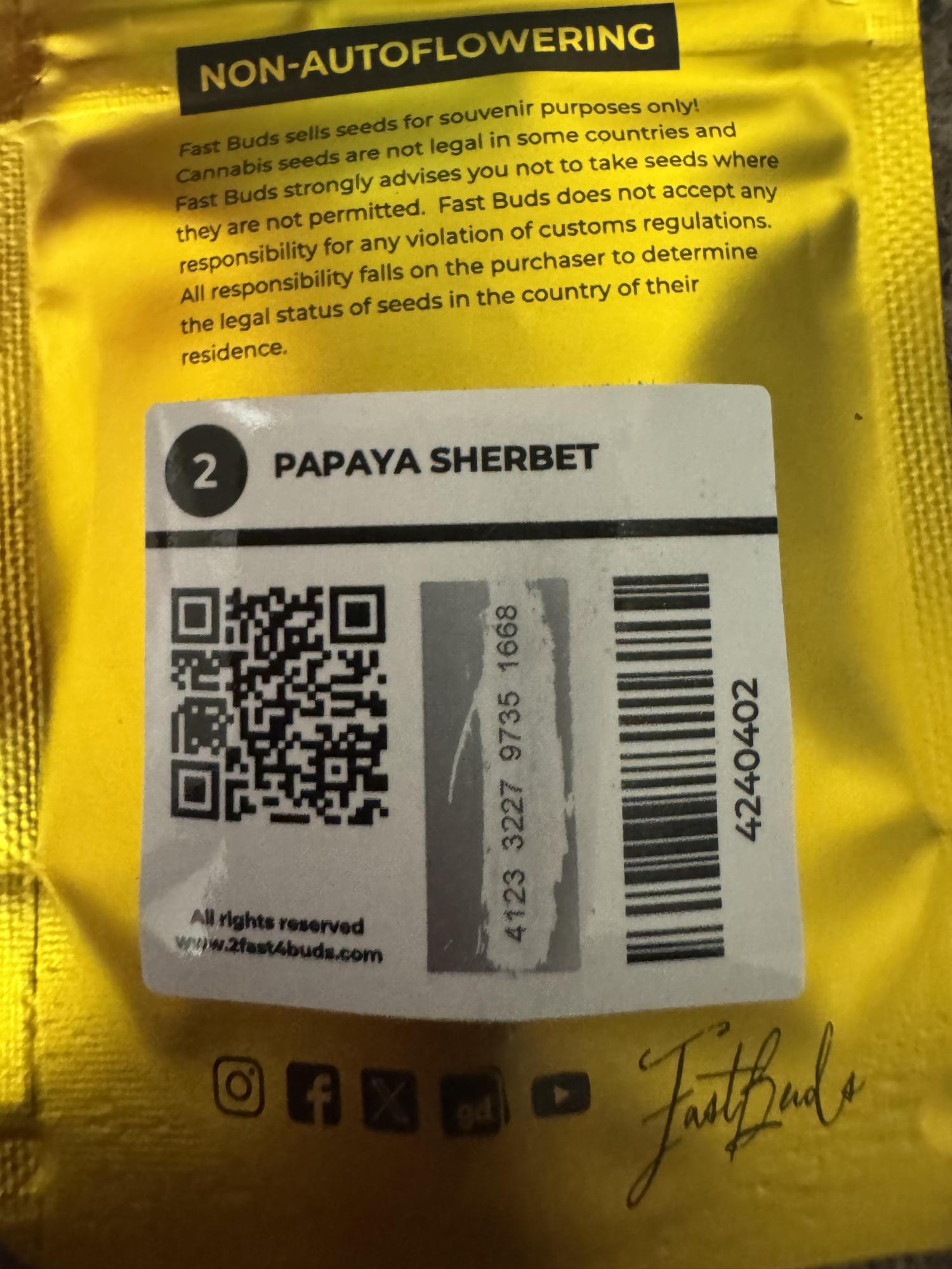 Papaya Sherbet is a powerful, indica-dominant hybrid that delivers a deeply relaxing and stress-relieving experience. This potent Sunset Sherbet x Papaya cross with a tropical, creamy taste contains primarily sedative effects that won’t leave you couch-locked, making it perfect for unwinding after a long day. The long-lasting effects of Papaya Sherbet start off slowly with a soothing euphoric wave that gently lifts the spirits. A heavy physical relaxation soon settles in, easing tension throughout the body and eliminating muscle aches and pains. With a physical calm and balanced sense of relaxed mental clarity that lingers for hours, Papaya Sherbet is ideal for a super chill, somewhat sedative sensation that allows you to maintain mental focus. With a delicious tropical and creamy taste, Papaya Sherbet blends a sweet, fruity flavor with prominent citrus undertones and a rich, creamy finish that lingers on the palate. Its aroma is similar, with a sweet yet slightly bitter fragrance during cultivation that hints at the creamy tropical fruitiness experienced when smoking. With its high THC content of up to 30%, Papaya Sherbet is particularly beneficial for medical patients and experienced consumers. Medical users report relief from chronic pain and muscle tension. Its soothing effects can also support stress, anxiety, and sleep, inspiring both mind and body relaxation. Its high potency can be overwhelming for users with lower tolerance. Common negative effects include dry mouth, dry eyes, and occasional dizziness. This resilient, high-yielding strain is easy-to-grow both indoors and outside, making it perfect for both novice and experienced growers. With a flowering time of around 56-60 days, it produces dense, medium-sized, resinous, dark green buds that can take on a purple hue—especially in cooler conditions. Its high resin production makes Papaya Sherbet an excellent strain for extraction.